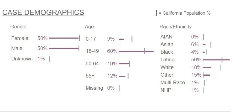 In California, Latinos are the only group that has experienced both more Covid deaths and more Covid-19 positive cases than their percentage of the population.